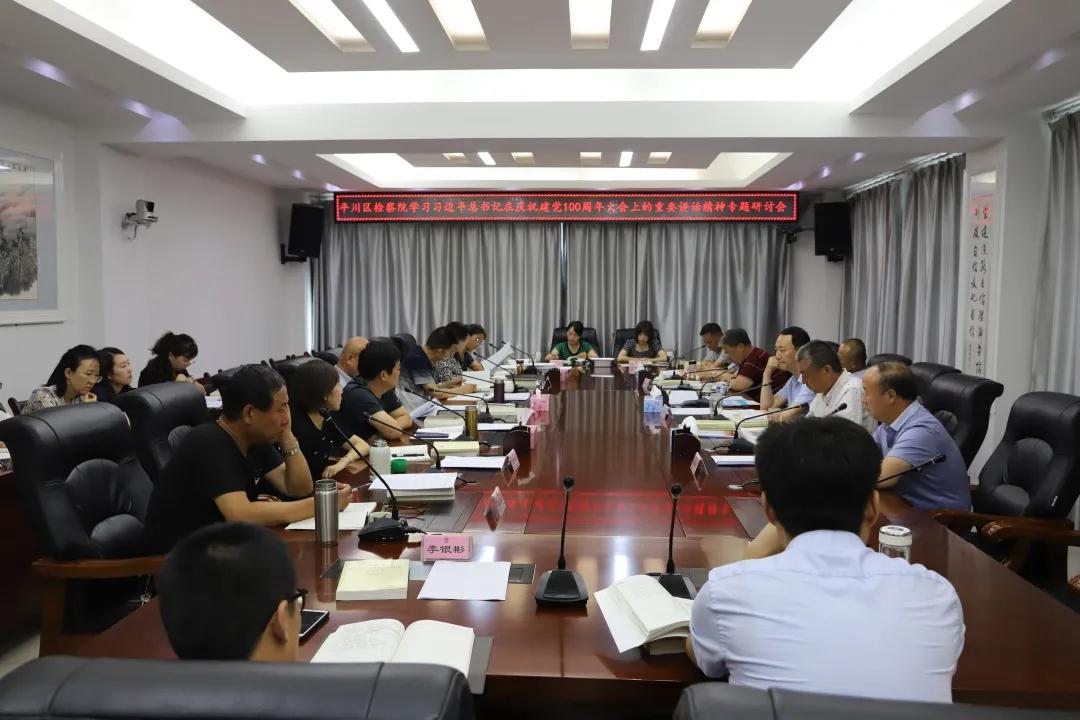 7月5日,白银市平川区检察院党组书记、检察长颜为忠主持召开党组理论学习中心组专题会议,组织全体副科级以上领导干部认真学习习近平总书记“七一”重要讲话精神,重温讲话金句和庆典盛况,并进行热烈研讨。与会干警纷纷表示,总书记的讲话高屋建瓴、视野宏大、思想深邃,鼓舞人心,令人心潮澎湃,作为一名党员,一名人民检察官,要坚持以习近平总书记重要讲话精神为根本指引,不忘初心,牢记使命,检心向党,检心为民,永葆红色的底色和本色。