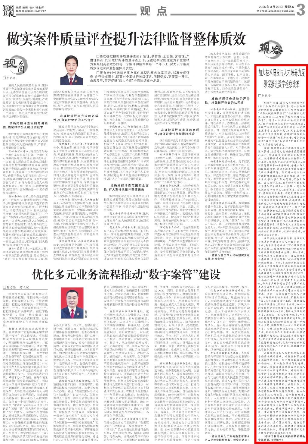 2025年3月28日,检察日报刊发理论文章《加大技术研发与人才培养力度 纵深推进数字检察改革》。