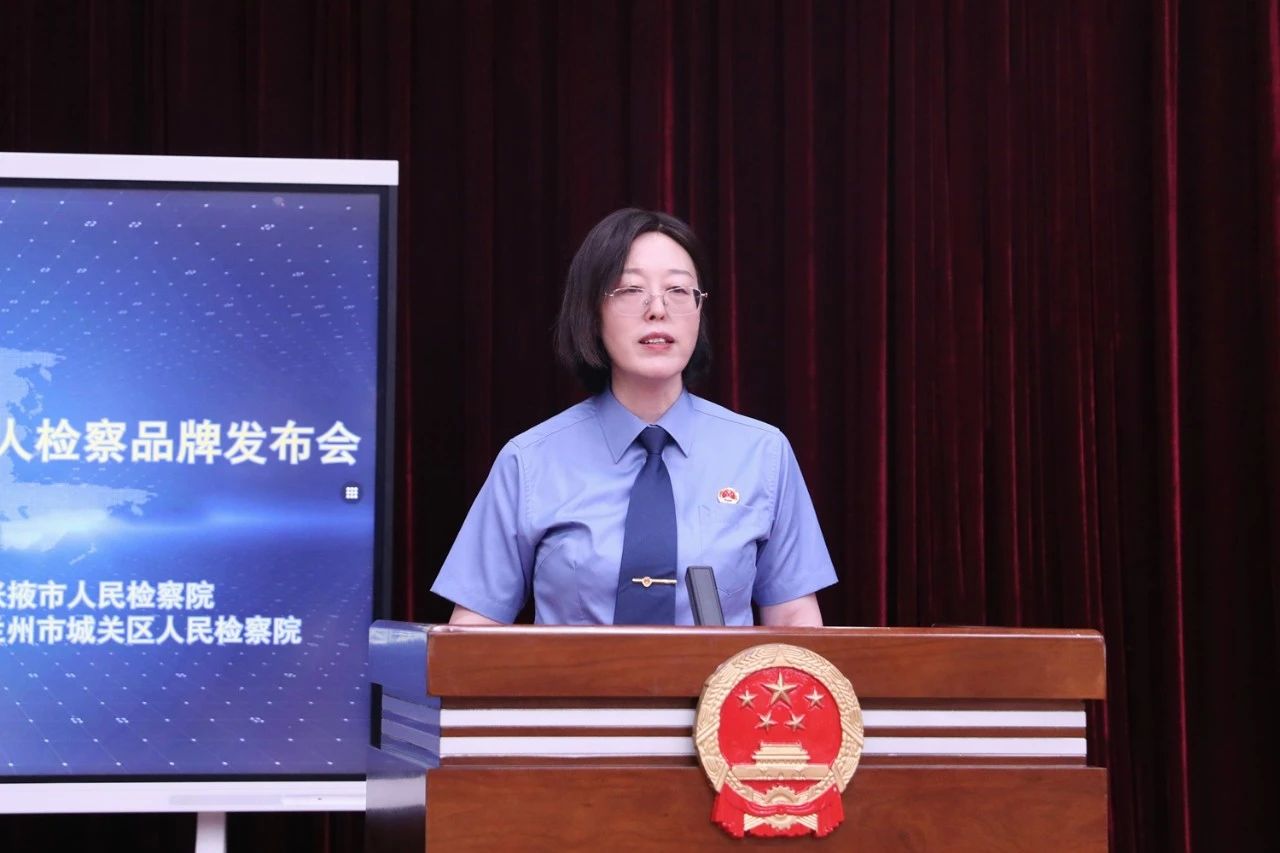 代表未成年人“六大保护”的省委社会工作部、省委网信办、省检察院、省教育厅、省民政厅、省妇联等单位领导共同按下品牌发布按钮后,现场播放了品牌宣传片,直观展示近年来甘肃省检察机关未成年人保护工作做法和成效。