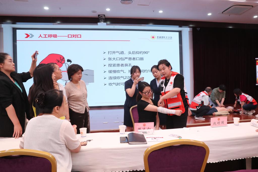 培训中,讲师们通过通俗易懂的语言和具体案例,生动形象地讲解了心肺复苏基础知识、自动体外除颤仪(AED)的标准化操作流程、气道异物梗阻的处理等急救理论知识以及创伤救护等常见意外伤害的预防和急救方法。同时针对日常生活中常见的突发晕厥、气道梗阻等情形,结合人体模型演示了海姆立克急救法等实用技能的操作技巧。
