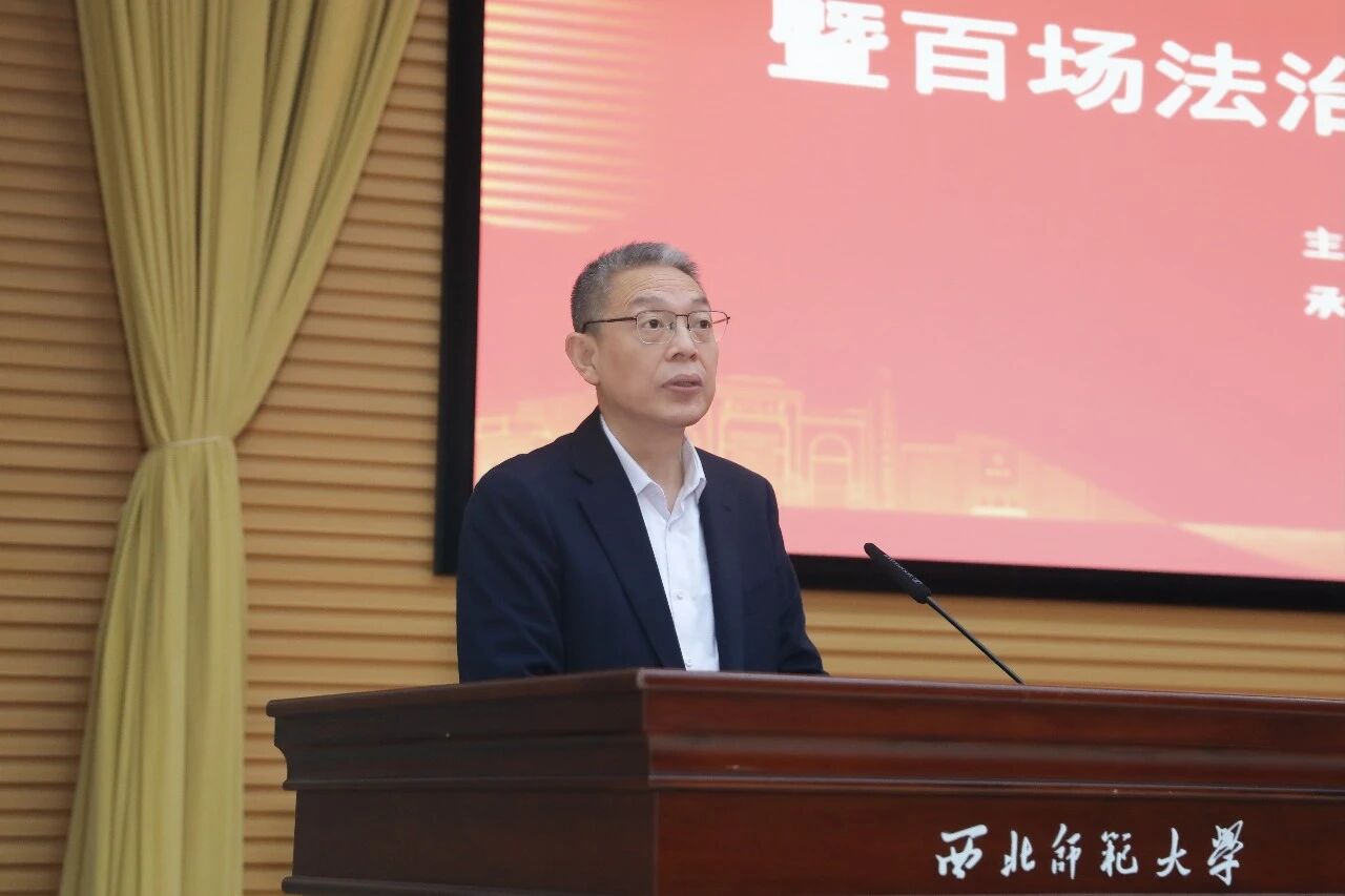 西北师范大学党委书记贾宁主持讲座时表示,这场高质量的法治讲座为全校师生深入学习贯彻习近平法治思想提供了权威辅导,进一步增强了广大师生维护国家安全的责任感和使命感。学校将以此次活动为新起点,持续把学习宣传贯彻习近平法治思想引向深入,将法治教育与国家安全教育贯穿办学治校全过程,引导广大师生争做习近平法治思想的坚定信仰者、积极传播者、模范践行者。