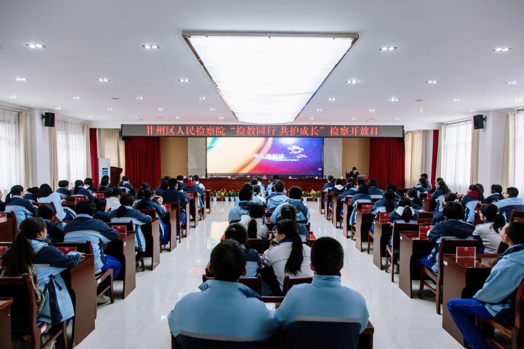 近日,张掖市甘州区检察院举办“检教同行 共护成长”检察开放日活动,邀请市第二中学百余名师生走进检察机关,开启一场“零距离”感知法治、“沉浸式”体验司法的探索之旅。