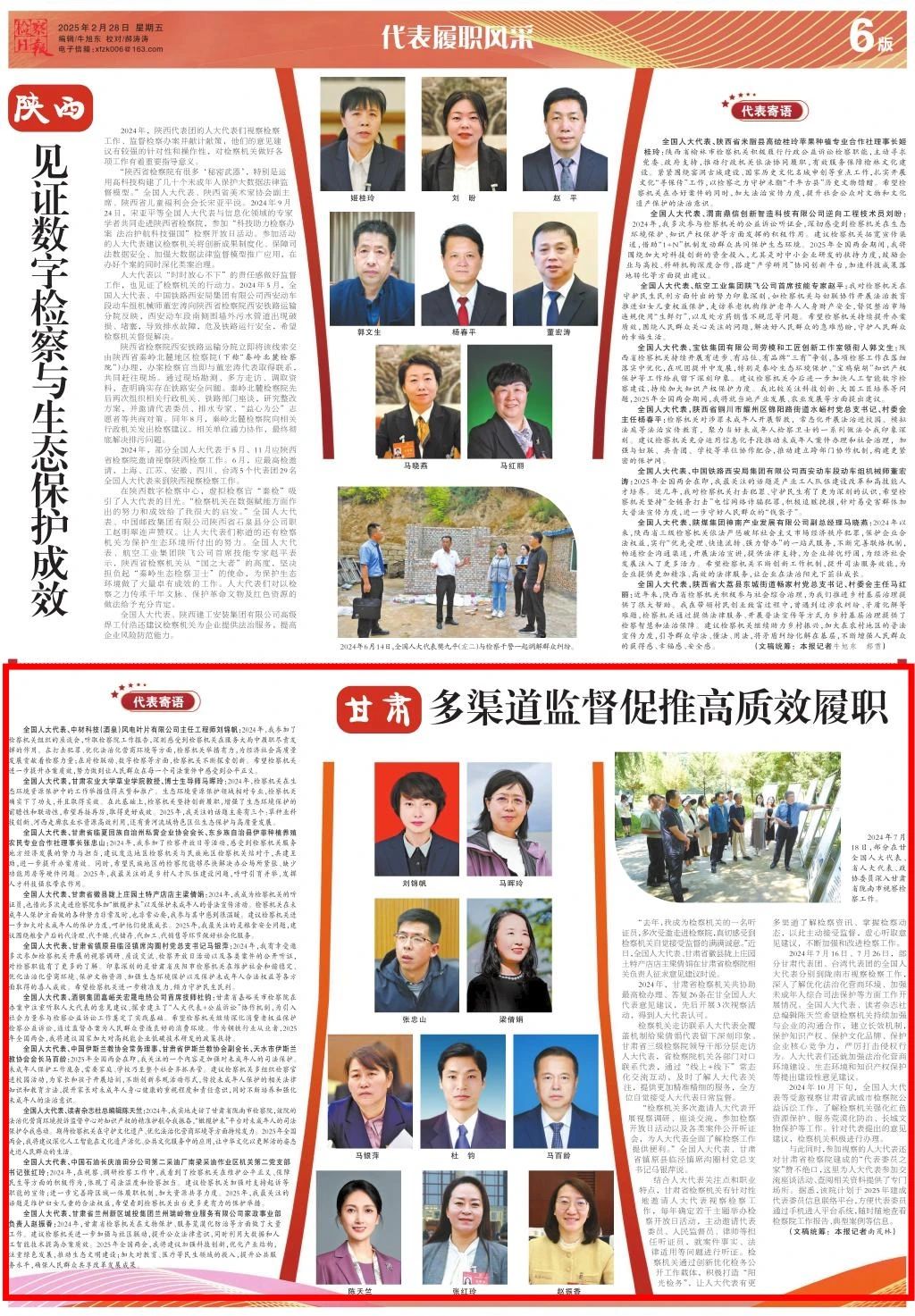 2025年2月28日,检察日报《代表履职风采》专栏刊发《甘肃:多渠道监督促推高质效履职》。