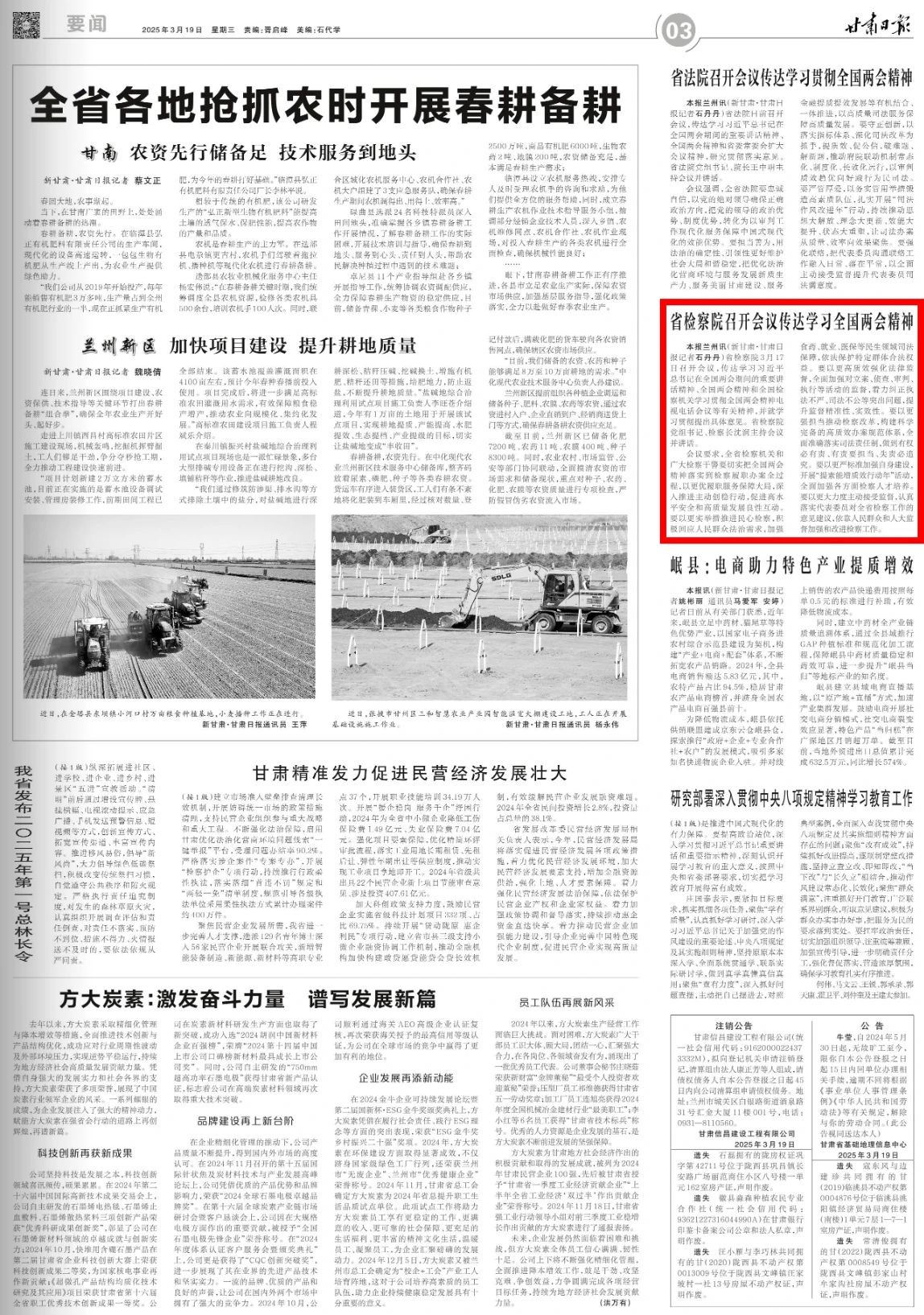 2025年3月19日,甘肃日报刊发《省检察院召开会议传达学习全国两会精神》。