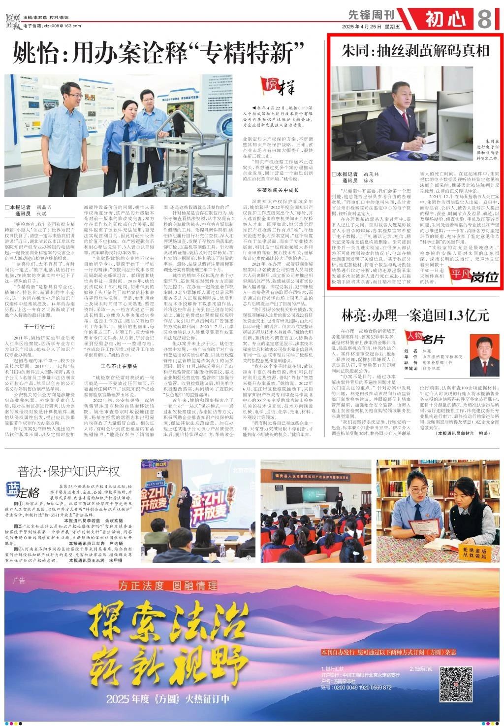 2025年4月25日,检察日报先锋周刊刊发《朱同:抽丝剥茧解码真相》。