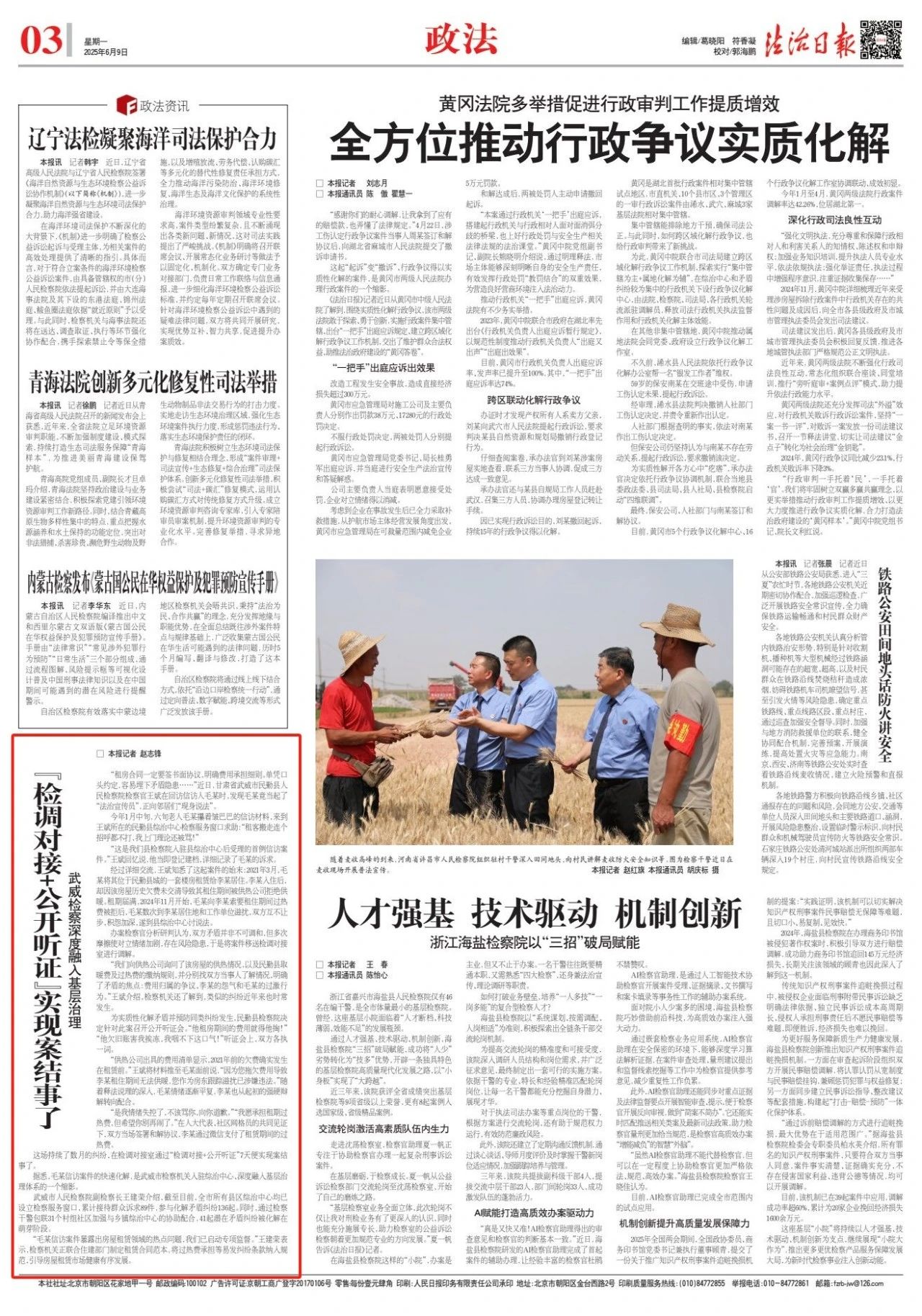 2025年6月9日,法治日报刊发《“检调对接+公开听证”实现案结事了 武威检察深度融入基层治理》。