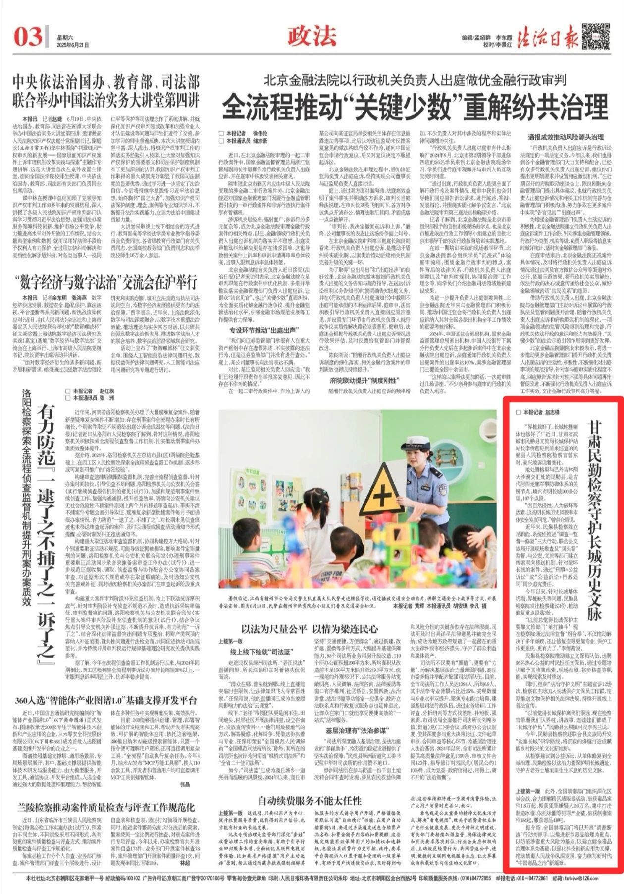 2025年6月21日,法治日报刊发《甘肃民勤检察守护长城历史文脉》。