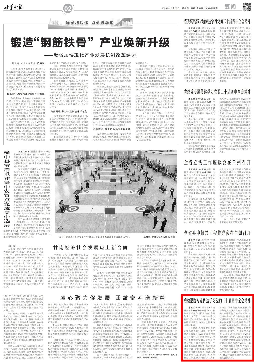 2025年10月30日,甘肃日报刊发《省检察院专题传达学习党的二十届四中全会精神》。