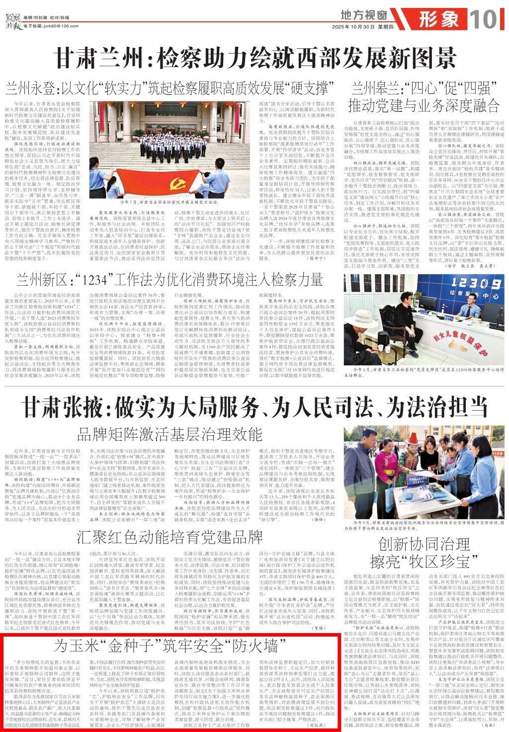 2025年10月30日,检察日报地方视窗《甘肃张掖:做实为大局服务、为人民司法、为法治担当》专版刊发《为玉米“金种子”筑牢安全“防火墙”》。