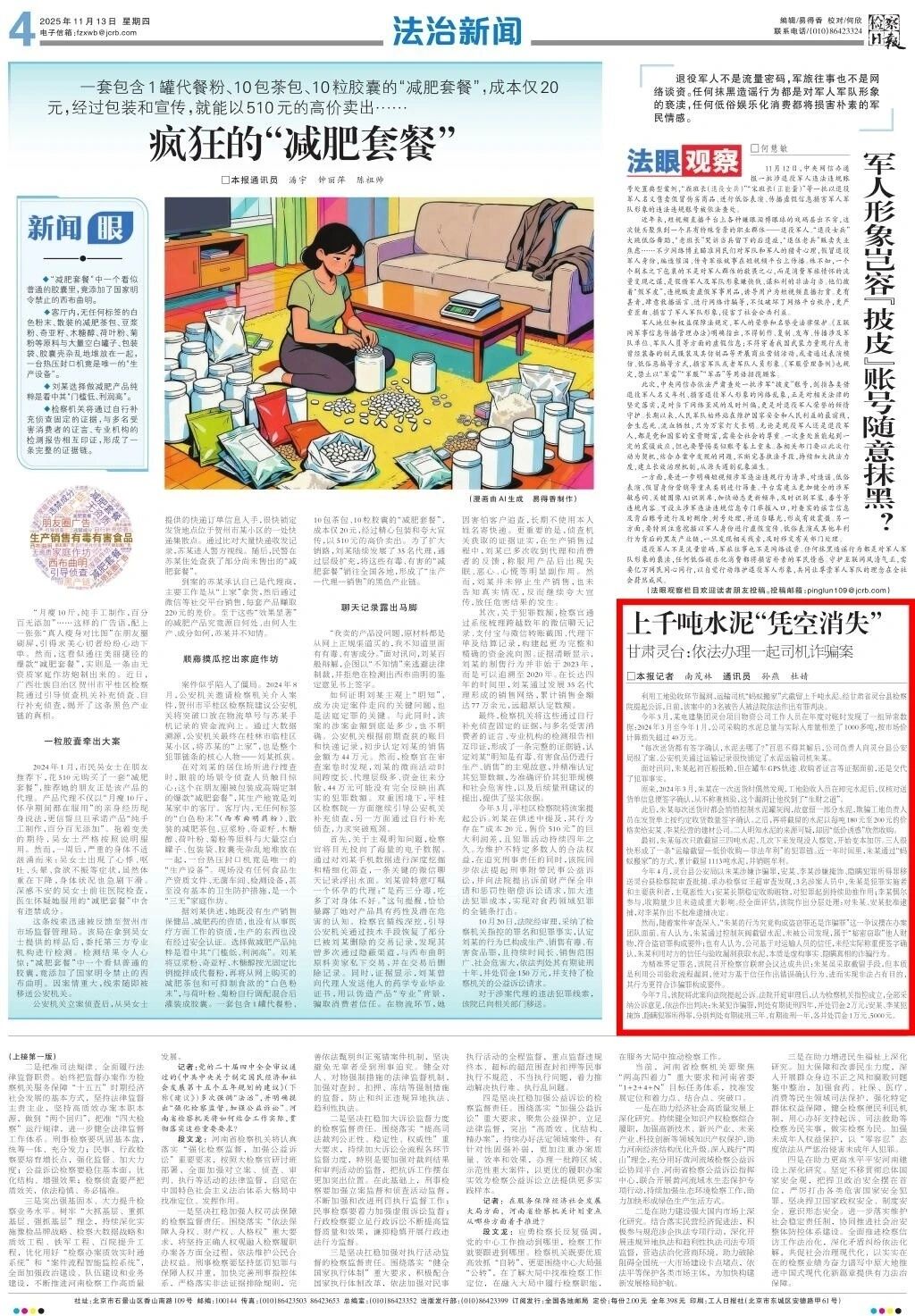 2025年11月13日,检察日报刊发《上千吨水泥“凭空消失” 甘肃灵台:依法办理一起司机诈骗案》。
