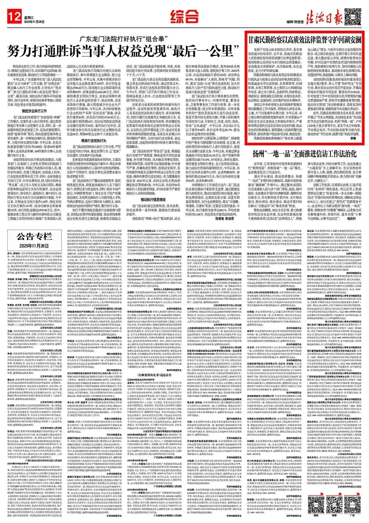 2025年11月26日,法治日报刊发《甘肃民勤检察以高质效法律监督守护河湖安澜》。
