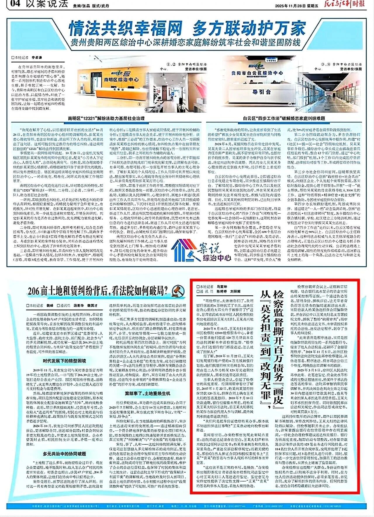 2025年11月28日,民主与法制时报刊发《从“莫名担责”到“改判无罪”,检察监督撕开百万债务“画皮”》。