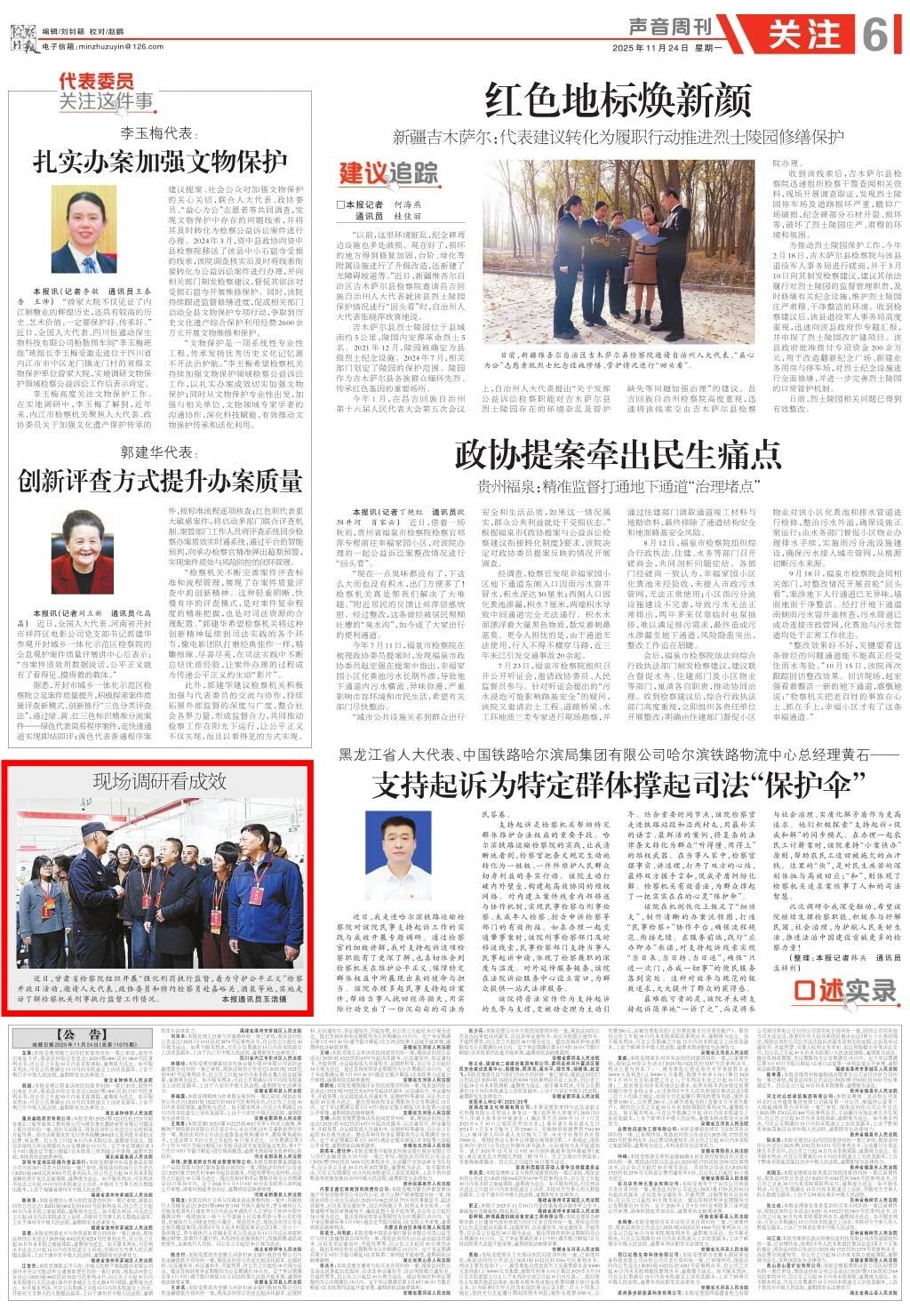 2025年11月24日,检察日报声音周刊刊发《现场调研看成效》。
