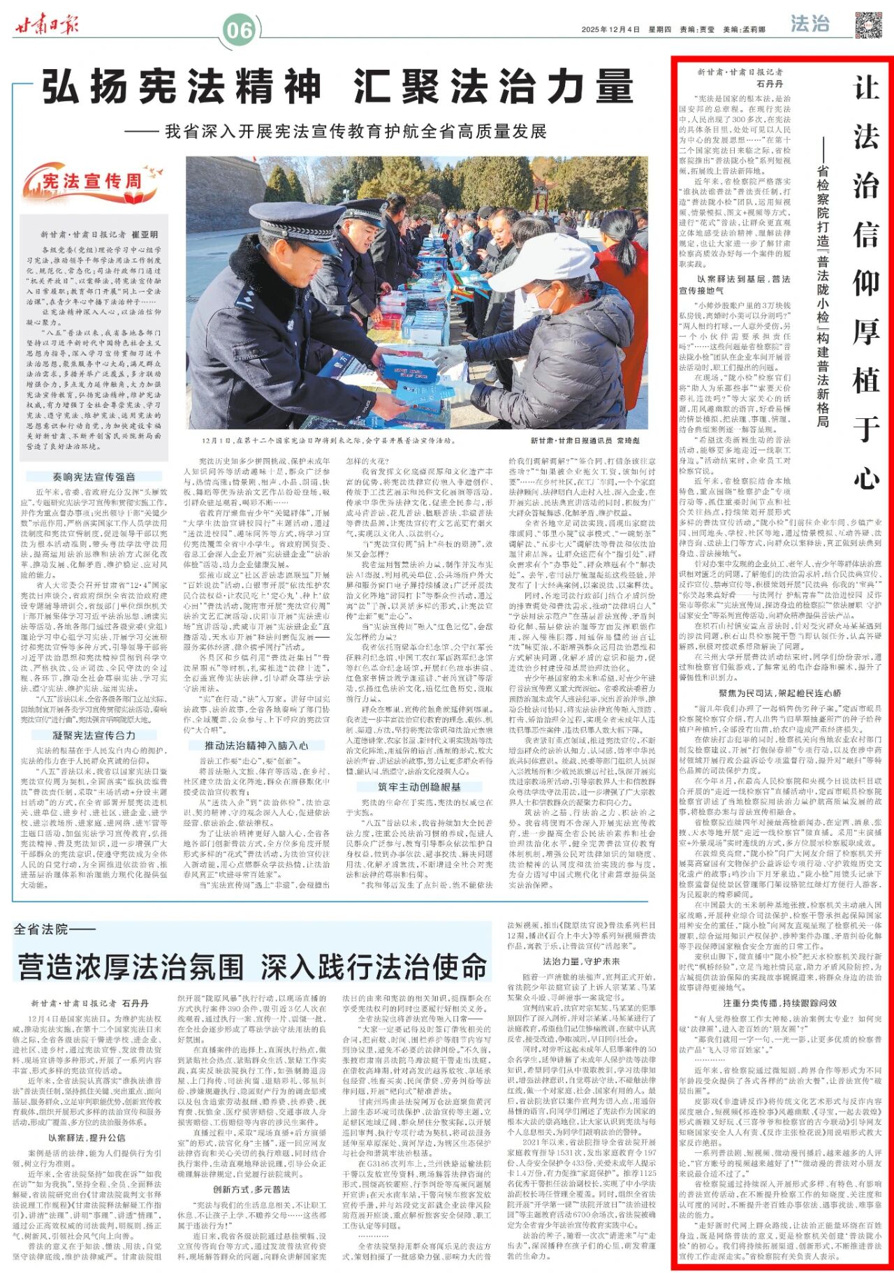 2025年12月4日,甘肃日报刊发《让法治信仰厚植于心——省检察院打造“普法陇小检”构建普法新格局》。