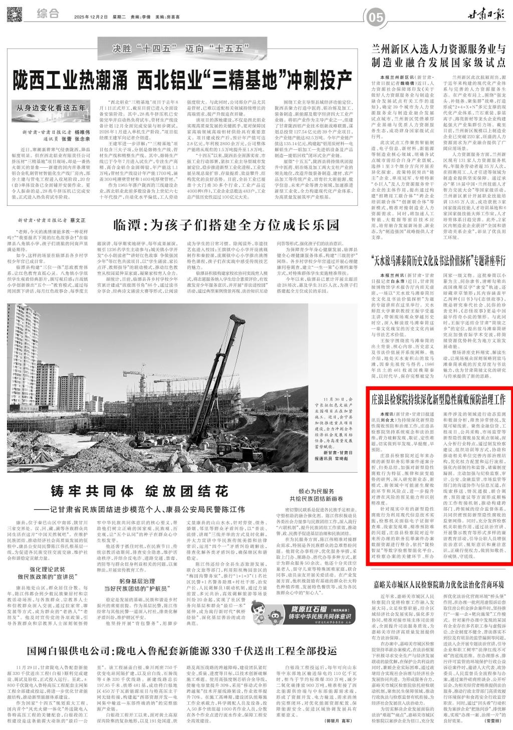 2025年12月2日,甘肃日报刊发《庄浪县检察院持续深化新型隐性腐败预防治理工作》。